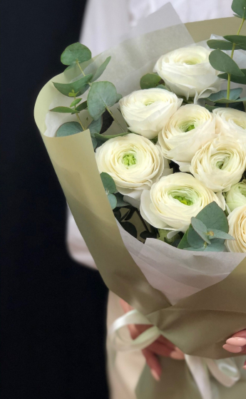Букет из белых ранункулюсов